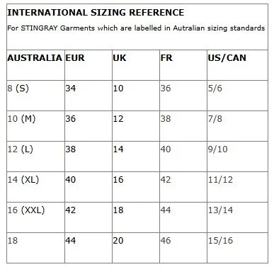 Find out what the size conversions with Stingray's simple size reference table, then check out the big range of protective clothing for the summers ahead!